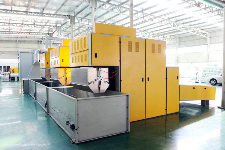 應用范圍:開松各種捆包纖維,由電子秤稱量進行配比,自動將纖維均勻平鋪在輸送簾上。